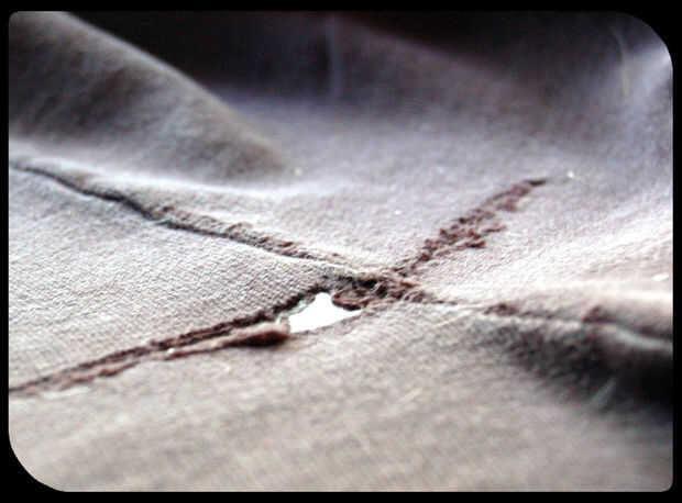 No tiene que ser perfecto (en la foto que yo no Junte los lados de la rip totalmente para evitar parches en un pliegue). No usar estos sudores a programas de premios o bodas... pero será perfectos para trabajar alrededor de la casa, ya que son pre-disastered. :)