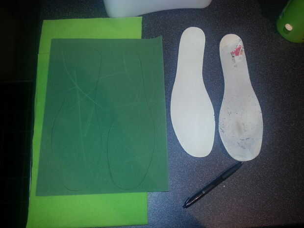 Tela de fieltro de tu color de elección (lo suficiente para hacer dos capas para ambos pies)