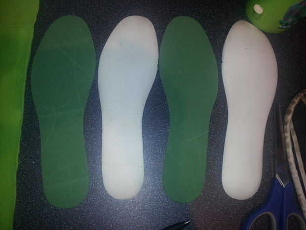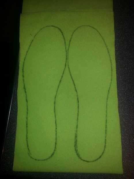 Comienzo dibujando alrededor de las plantillas en la espuma. Cortar la espuma y compruebe que las plantillas como cerca como posible. Luego traza en torno a sus plantillas en el fieltro que se ha duplicado, por lo que terminarás con 4 piezas.