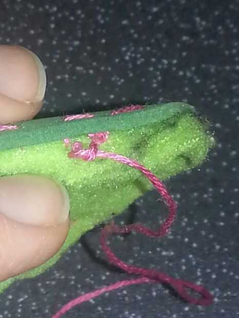 Poner la aguja a través de este circuito un par de veces en la misma dirección y tire suavemente. Se nudo contra la tela. Asegure firmemente y cortar el hilo. Admirar la belleza de su obra, revelling en el dominio de un nuevo arte sostenible Muhahahaha!