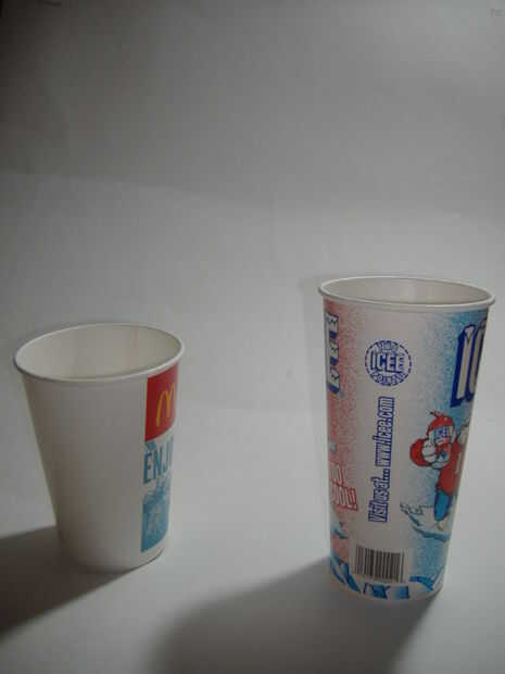 dos vasos, uno más pequeño y más corto que el otro de papel.