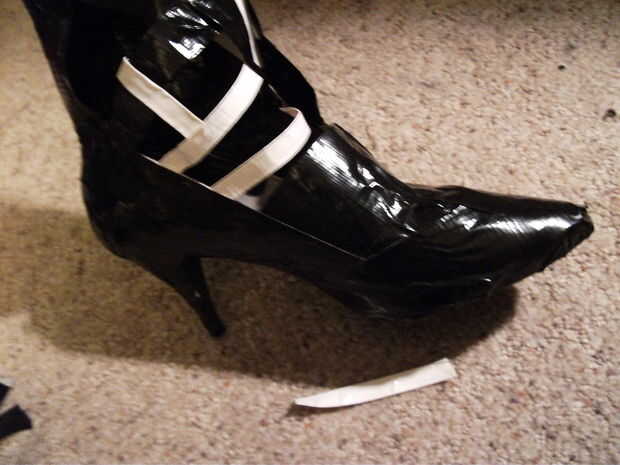 Finalmente, acabado que cubre el resto de la zapatilla con la cinta. Esta es otra oportunidad para ser creativo con el diseño y el color. Suavizar cualquier burbuja en el maletero y rematar el borde superior doblando sobre la cinta. Su inicio es completo! Final paso, mostrar a los amigos :)