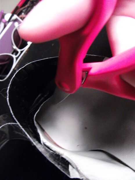 A continuación, tomar las tijeras, cortar el interior cinta creado a partir de la primera travesía de la tira sobre el zapato. Entonces, cinta detrás el corte termina. Este paso facilita el arranque en.