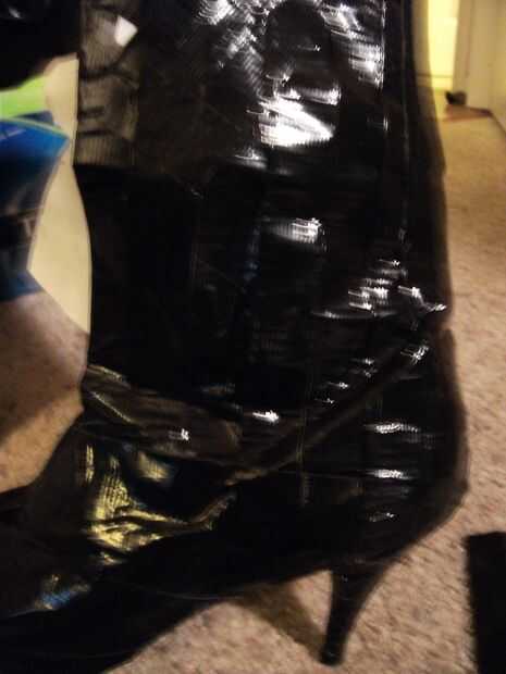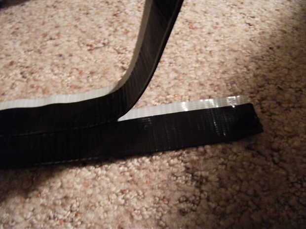 Adjuntar esta hoja de la cinta a una de las tiras de sus esqueletos. En mi bota. Hice el exterior cerrado y atado a la parte posterior izquierda tira.