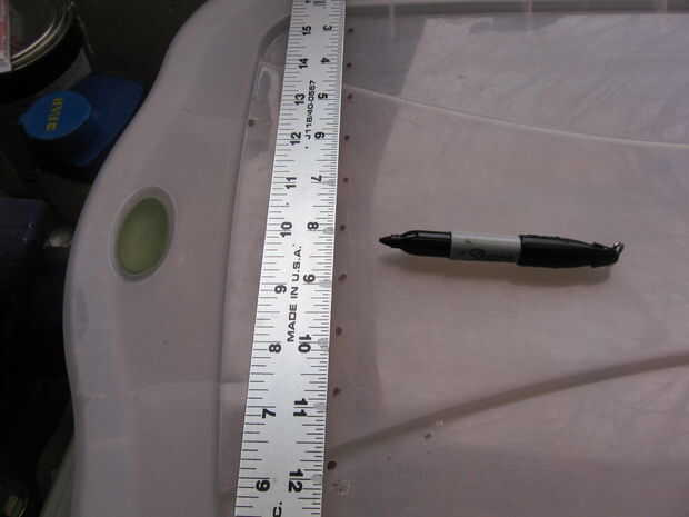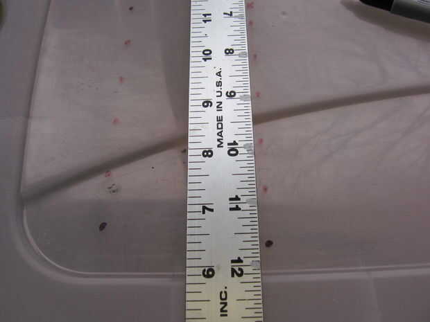 Primero puse mi regla aproximadamente una pulgada desde el borde de la depresión. Entonces marqué de intervalos de 1 pulgada. Cuando llegué a la primera fila hecha me mudé la regla más de tres pulgadas. He marcado a intervalos de 1 pulgada nuevo pero que estaban fuera de juego del primer conjunto de marcas por 1/2". Hice esto en la teoría de que proporcionar un mejor drenaje y circulación a las suelas de las botas de aire. También ayudará a la tapa de mantener su fuerza.