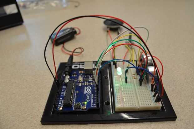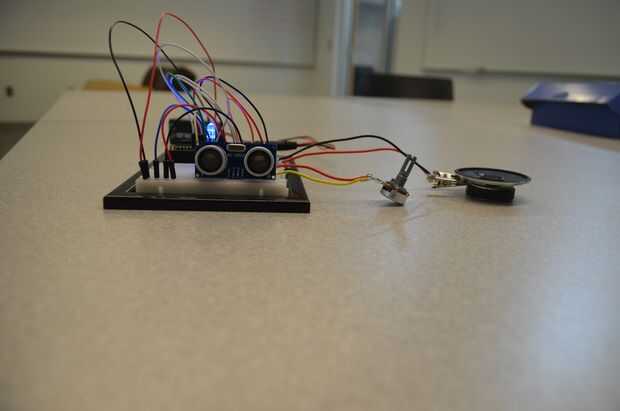 Actúa mucho como sonar - creando un pulso de sonido o "ping", luego medir el tiempo que tarda el eco en volver. Lo usaremos para detectar cuando un objeto está dentro de cierta gama del dispositivo y el gatillo un LED RGB a parpadear al ritmo de Aerodynamicde Daft Punk.