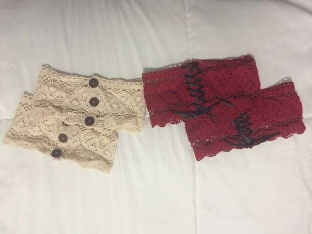 El encaje negro fue tejida aunque los orificios en el grueso cordón rojo para hacer un lindo arco pequeño en la parte superior! El brazalete rojo arranque se creó para que coincida con cualquiera de mis botas marrones! Cada manguito arranque tomó alrededor de quince a veinte minutos a cordón.