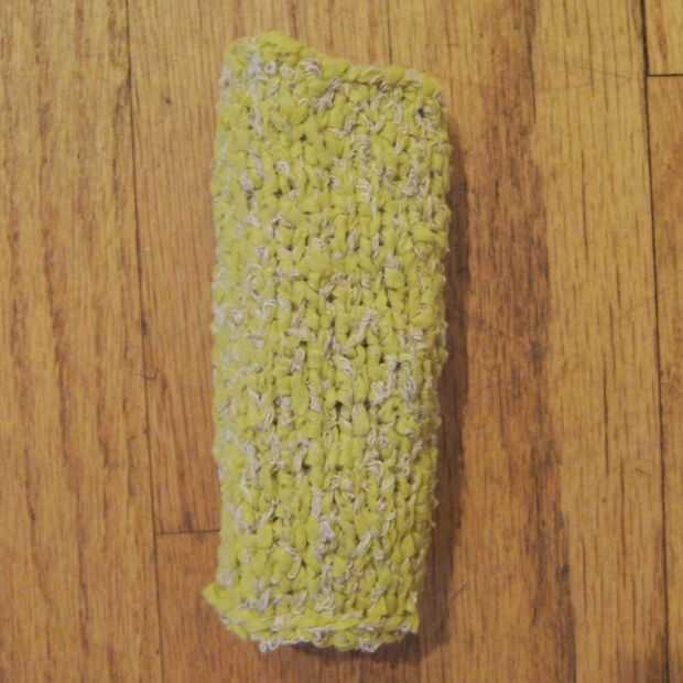 Cortar un rectángulo de entretela pesada ligeramente más corto que el tubo y cerca de 3 veces la circunferencia, ruede para arriba y colóquela dentro del tubo del punto.