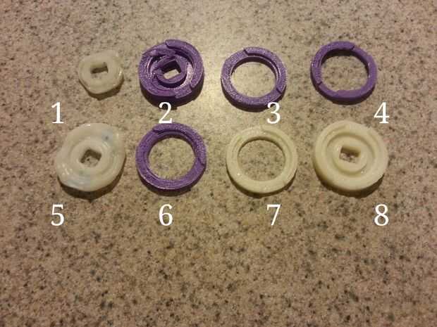 2 - la primera y más impresión completa optimista. No se apresure retirar sus piezas de la cama. Puede llevar a fracturas impresiones! Encaja el eje cuadrado, pero no se acoplará con el actuador.