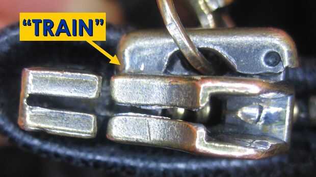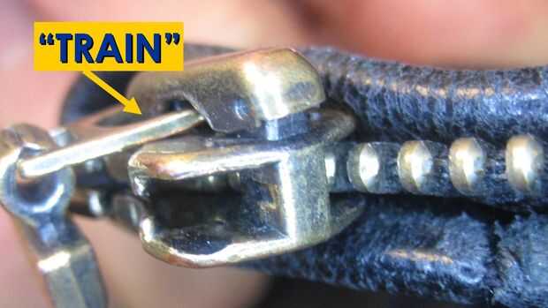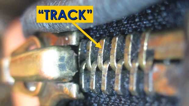 Si lo piensas bien, el tren se desliza hacia arriba y hacia abajo y cierra o abre las 2 mitades de la cremallera juntos. Cuando deslice el tren hacia arriba, está diseñado para traer los 2 temas juntos en un ángulo preciso para que los dedos inter-vinculan. Si hay demasiado "juego" porque el tren tiene flexionado o estirado un poco abierta, los dedos de pista no golpear entre sí perfectamente y podría resbalarse y no vincularse. Ese es el problema!