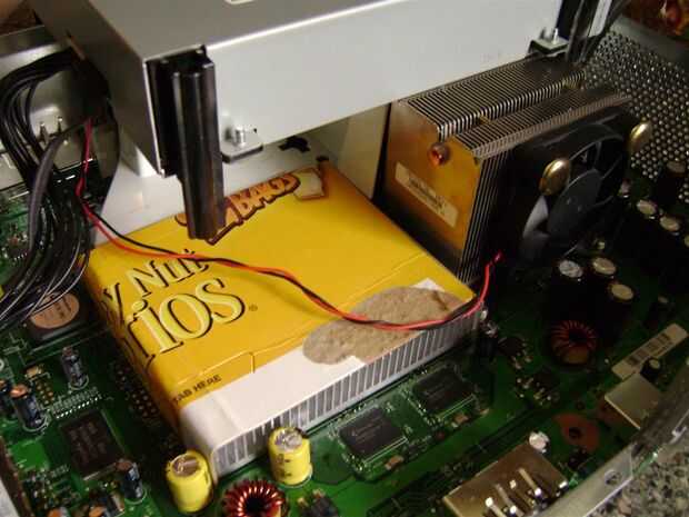 Ahora que ha resucitado la consola, ¿qué puede hacer para impedir que vuelva a ocurrir tal farsa? Como veis en la foto principal, me adjunta un pequeño ventilador de una tarjeta de gráficos PCI en el disipador de la CPU y conectados a la fuente de alimentación del ventilador de 360 ' s. Con ello empujar el aire a través del disipador de calor (o tirando si ese es su punto de vista) el aire que sale del escape es realmente cool!