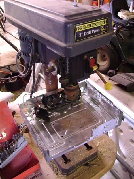 Para ampliarles, use un taladro de 3/16 de pulgada de bits con un taladro o taladro de mano. Si estás usando un taladro de mano, establecer un bloque de madera debajo de cada agujero conforme taladra para evitar deformaciones en el caso. Si estás usando un taladro como debe ser un pedestal de acero con un agujero para la broca para pasar, salvando el caso de FUBAR grave-edad.