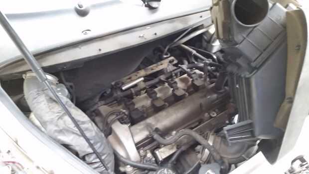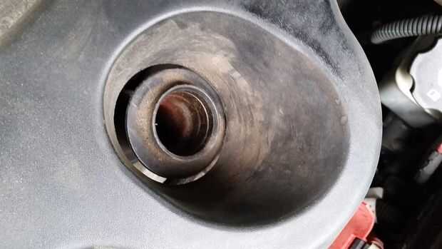 Primero es necesario mover la carcasa fuera del camino. Se une por sólo los conductos y algunos clips. Quitar los conductos y remover el tapón del aceite. Tire la cubierta hacia arriba y a la derecha, teniendo cuidado de no para dañar las otras cosas que se adjunta.