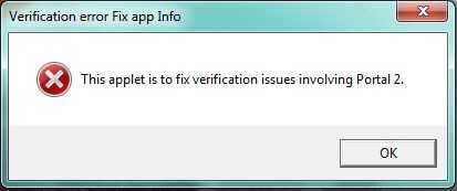 msg = msgbox ("Este applet es solucionar cuestiones de verificación relacionadas con el Portal 2.", 16, "verificación error Fix aplicación Info")