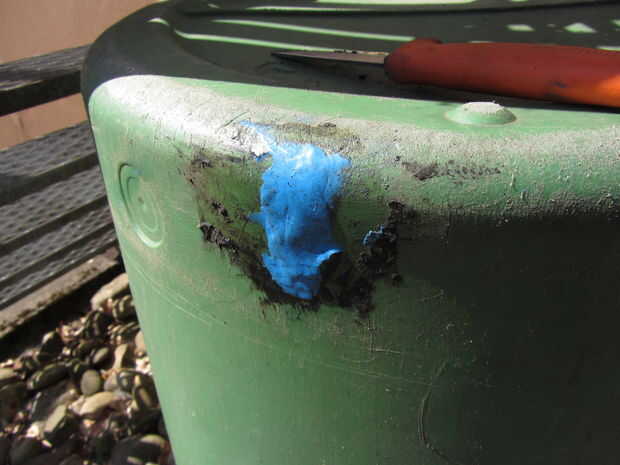 Arreglar grietas en un tanque de agua de lluvia con sugru (2 / 4 paso)