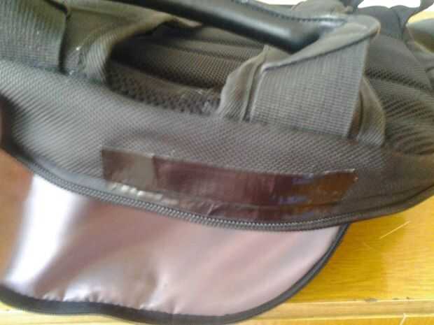 Eso es todo: mientras la primera posición, sin la cinta, había durado 1-2 dias, ahora ya hace 20 días tomó esas fotos, 20 días de uso muy intensivo de la mochila, y la costura no muestra señales de usura.