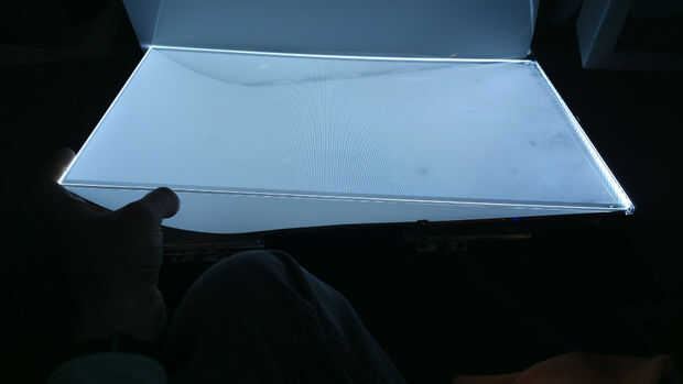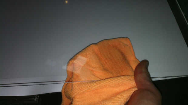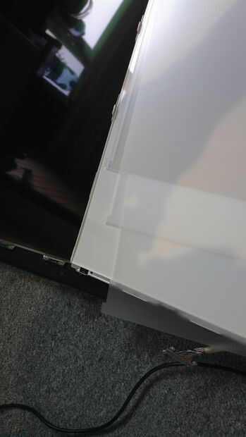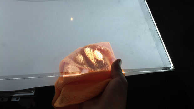 También había suciedad / manchas de agua detrás de la pantalla de reflexión blanco. Que es muy sensible al rayado.