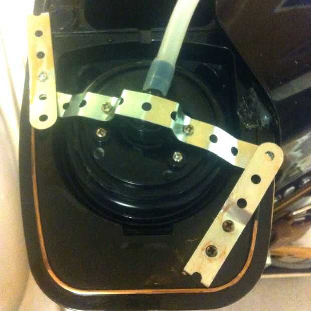 He añadido un cubo de plástico barato hackeado para usar el espacio extra de la caldera para almacenamiento / todo / café / / cuchara de azúcar en punto de uso.
