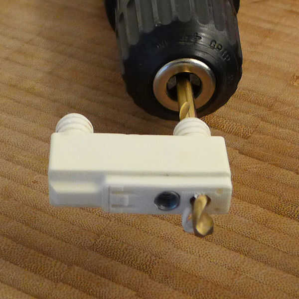La idea es hacer primero un agujero en la base de la bisagra (ver fotos, aquí blanco de plástico). Utilizar el cilindro hueco en el pie para este propósito (véase el cuadro). En segundo lugar, es perforar un orificio en el gabinete interior de la pared como se muestra en las fotos en el paso 2.