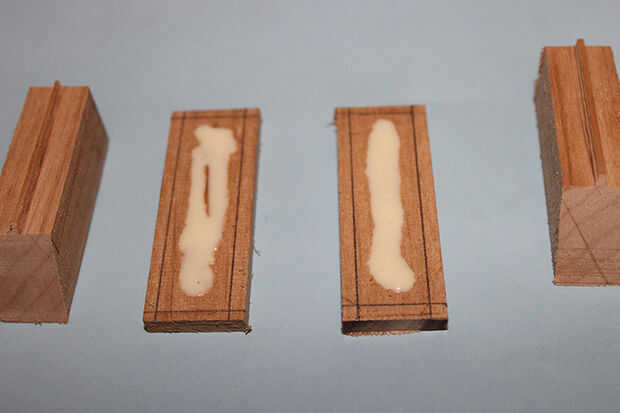 a continuación, pegar las piezas con algún pegamento de madera. Antes de pegar sin embargo, yo sugeriría que averiguar su colocación de manera que los bordes alrededor de los lados son iguales, luego marcan con un lápiz. Estas marcas de registro le ayudará a alinear su cola y la parte superior cuando se pone en su lugar. Deje que el pegamento durante 20 minutos, ya que poniendo los pernos a través de este, tendrá tiempo suficiente para secar cuando lleva a cabo con los pernos.