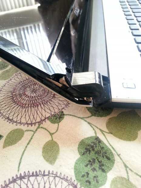 En la primera foto se puede ver la bisagra rota, que la placa de metal es normalmente cautiva entre el bisel y un marco plástico interior. Hay un montón de esfuerzo de torsión de la articulación cuando abrir y cuando el tornillo no lo dio lugar a la rotura de la luneta.