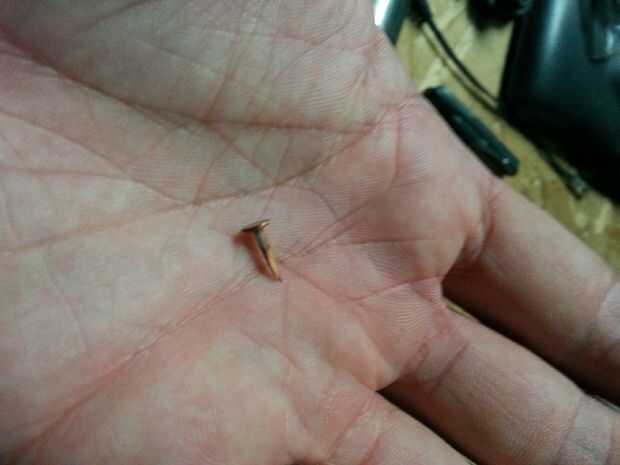 Una vez que la tachuela quede al ras con la parte posterior de la pantalla, utilice un perforador para doblar la punta o para trabar todo en lugar de la Peña.