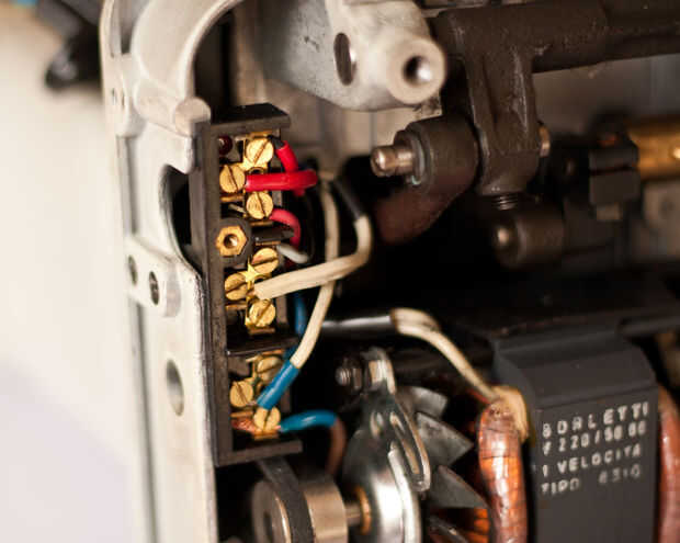 Entonces usted puede conectar los tres cables a los tornillos correspondientes. Cerca también una cubierta de plástico si está presente.
