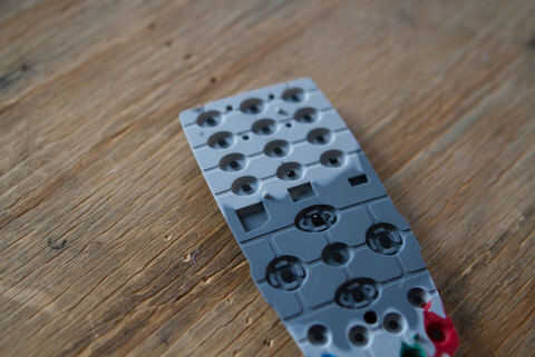 Revise el reverso de los botones de goma para asegurarse de que las almohadillas conductoras no han gastado en cualquier lugar. Tuvimos un par de secciones astillados que tuvimos que trabajar con una pluma de 10ml de pintura eléctrico.