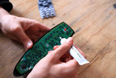 Puedes usar alcohol, quitaesmaltes o alcohol etílico para limpiar cualquier tipo de contaminación y una goma de borrar dura para limpiar cualquier corrosión (en las plataformas de metal) del clavo. Utilice una pluma de 10ml de pintura eléctrico para llenar en cualquier áreas erosionadas en las secciones de metal o de carbono. Sólo necesita una pequeña cantidad, y tenga muy cuidado de no cerrar el circuito en lugares que no deben ser superada, esto le parecerá lo mismo que tener un botón presionado permanentemente para el control remoto.