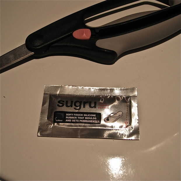 "Sugru" (sugru.com) es un goo de silicona secado al aire inventado por el artista irlandés y empresaria Jane ni Dhulchaointigh y un equipo de científicos de los materiales.Sugru comienza ligeramente pegajosa, como masilla tonta, pero después de