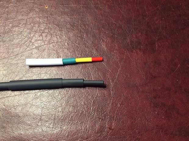 - Deslice el tubo sobre el cable y el conector de forma que el tubo se extiende a la izquierda y derecha en cuanto a prácticas más allá del área deshilachado del encogimiento del calor.