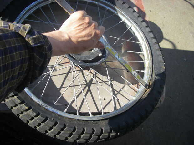 Asegúrese de que no pellizcar la cámara entre el hierro del neumático y nada más. Perforarla.