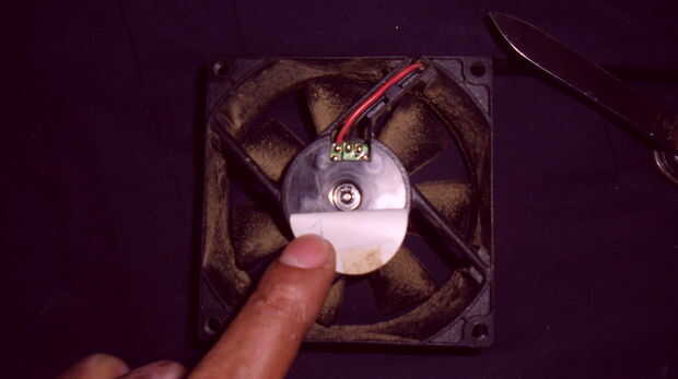 Si han quitado la fuente de alimentación, lo abrió y quitar el ventilador, puede engrasar en esta área, luego poner la arandela (si existe) y etiqueta en el lugar.