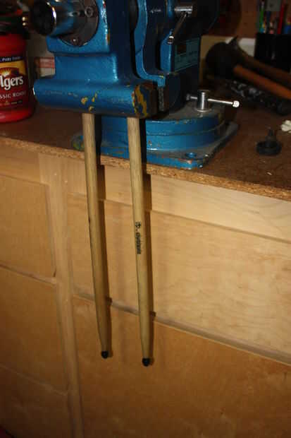 En una nota lateral: Ahora es un buen momento para cubrir algo completamente al azar con el exceso que Plasti Dip a la izquierda de la placa. Terminé agarrando algunos palillos del tambor extra que nunca uso y cubrió las puntas de la goma.