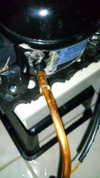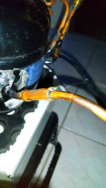 Línea reparada desarrolló una fuga pequeña en un lado de la articulación. Esto era debido a me tuerce la línea un poco para encajar en un refrigerador. La fuga apareció cinco días después de la prueba de mi proyecto de enfriador de agua. Ahora necesito reparar esta pérdida!