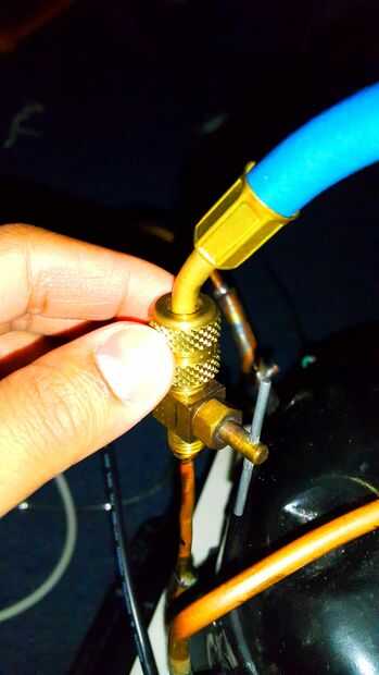 Ahora abrí la válvula de servicio para R134a en el sistema. Una vez que la presión estática alcanza 5 psi, apagué la válvula azul para colector. Ahora para la prueba y fina puesta a punto de carga de refrigerante.