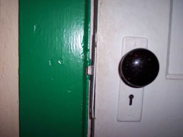 tenía una puerta molesta en mi baño que mantiene cierre por cuenta propia. En lugar de mantener un ladrillo delante de ella, he arreglado el problema en la bisagra.