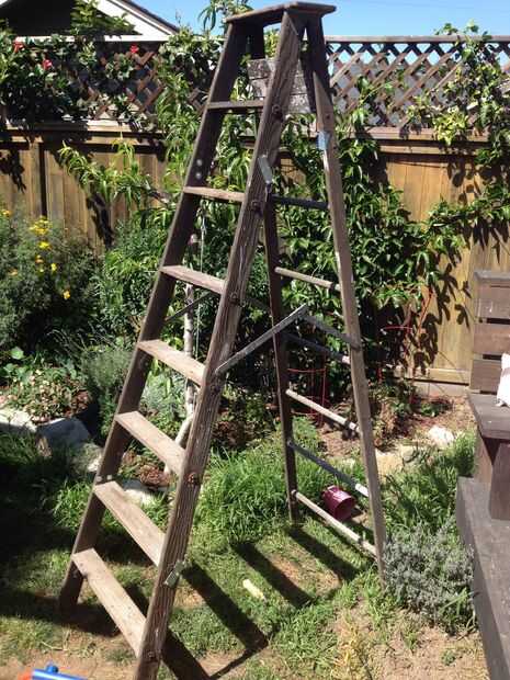 estaban en un centro de reciclaje y encontró una vieja escalera un poco más de tres yardas de largo. Tenía algunos pintura vieja en él y un montón de carácter.Después de haber visto algo parecido en un programa de jardinería, pensé que podríamos cor