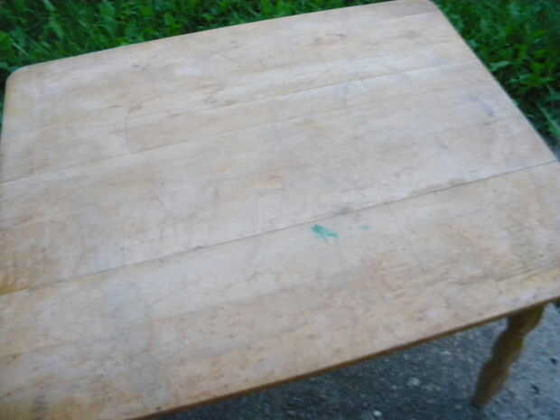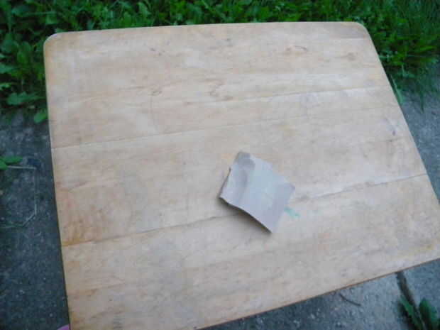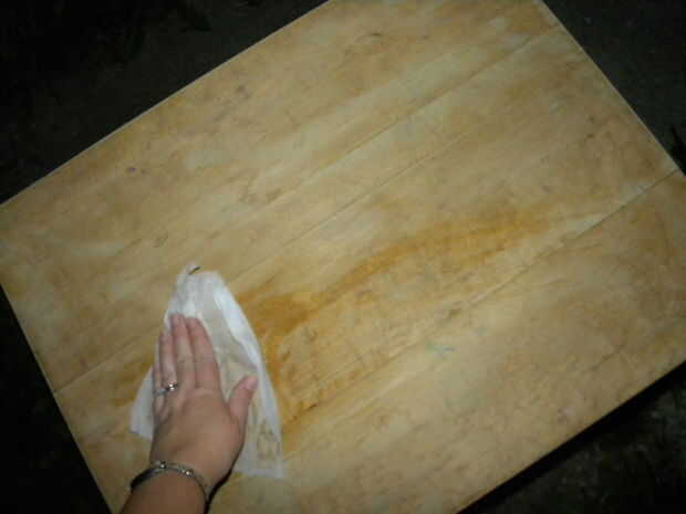 Una vez que lijar el tablero de la mesa, pasarlo a quitar todo el polvo. Usé una toalla mojada para este paso. Es necesario extraer el máximo polvo posible en orden para los adhesivos trabajar.