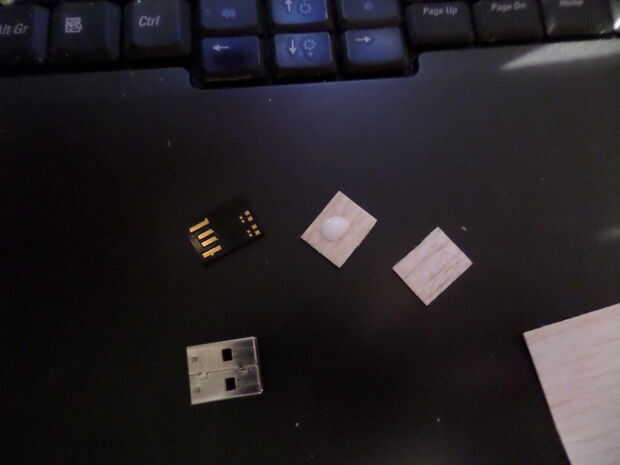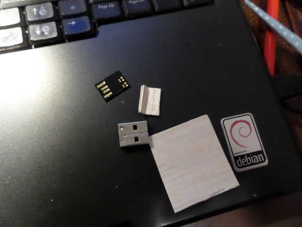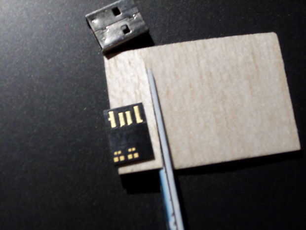 Corte una sección de la tira de la balsa y el ajuste para que coincida con el tamaño de la memoria stick do este dos veces como usted necesita de 2 mm de espesor (la balsa da un poco así que es agradable y apretado cuando termine)
