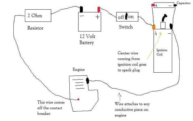 Para aquellos de ustedes familiarizados con la electrónica, cada componente es arbitrariamente conectado en serie sin tener en cuenta la polaridad. La excepción es la combinación de bobina/condensador de encendido en paralelo, y luego poner en serie con todo lo demás.