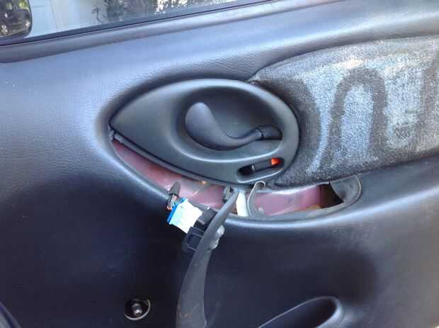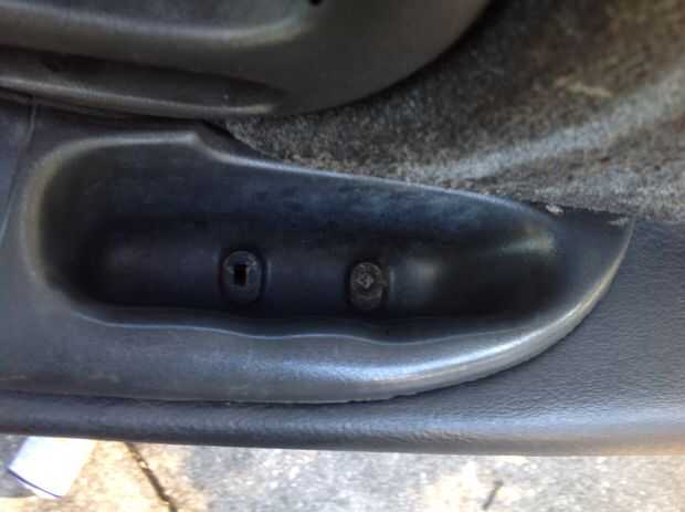 Retire los dos tornillos que agujerear la manija a la puerta luego puede tirar la cubierta de la manija de puerta derecha luego deshacer el clip que acciona las cerraduras de la energía y dejar de lado