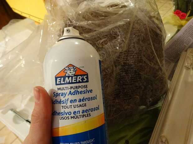 -cuando ya sea unas más suculentas en el marco o si unas suculentas tienen pie problemas, spray pegamento algunos musgos en la malla que rodea el suculento. Cortar trozos de musgo apagado el blob de musgo grande que viene en la bolsa y rociar el pegamento en el pedazo luego coloque el pedazo de musgo alrededor de la suculenta.