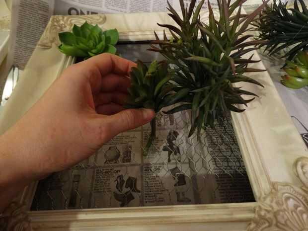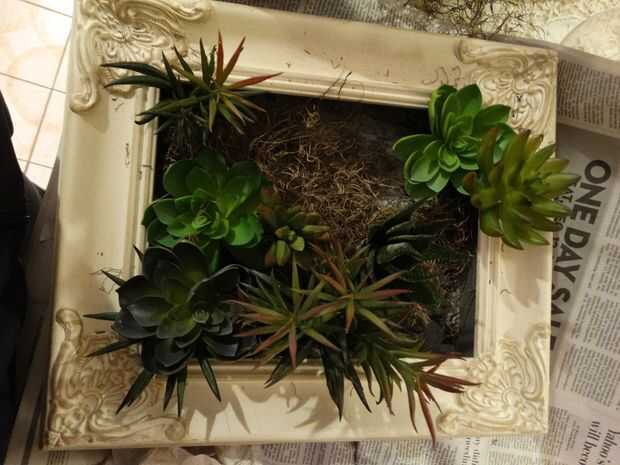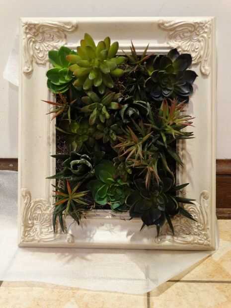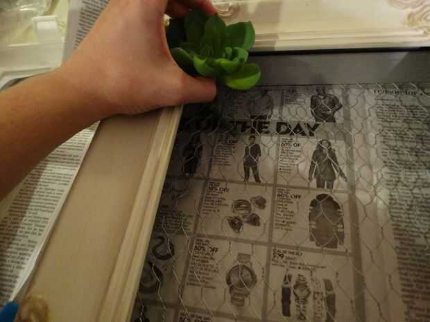 -Cuando termines suculentas "siembra", levantar el marco y tomar nota mental de donde había lagunas que usted podría ver malla (donde no había ningún musgo) y se adhieren algunos musgos en los lugares.