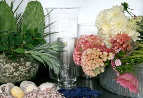 Para flores, utilicé las mamás (4 tallos), peine (1 tallo) gallo, dianthus (2 tallos) y margaritas gerbera (3 tallos). Los recogí en la tienda de comestibles, pero usted puede pedir por adelantado a través de una floristería o comerciante que vende al público por menos. Elegí estas flores para su costa o Prado-esque sienten, y seleccionado para una variedad de formas y texturas. Me gustó particularmente la polla peine y dianthus, pero la disponibilidad y el precio podrían no hacer derecho para usted dependiendo de donde usted está y la temporada. Al final, usé aproximadamente $9,50 vale de flores de este arreglo. También cuando seleccionar flores, considerar las alergias y las sensibilidades que puedan tener tus invitados.