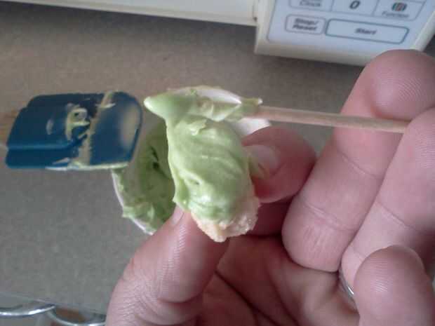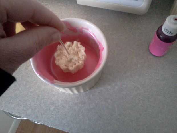 -Añadirle colorante con un palillo de dientes para el chocolate/bombones hasta que es la sombra correcta
