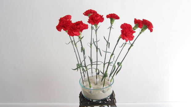 No hay ninguna mesa hermosa sin un hermoso centro de mesa!Proporcionar a sí mismo con un par de tijeras, un cuchillo, pan de espuma floral, un contenedor de hojas y flores de su elección según su decoración.Vamos a crear un arreglo de flores con un b