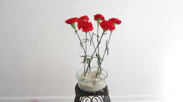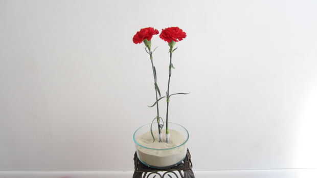 que nos mantiene realmente espuma floral alrededor? Bueno, menos de nosotros serían si supiéramos cuánto flores como beber de las patatas. Esta no es mi idea - se remonta décadas - pero funciona muy bien.Materiales:1 patata2. dulce flores3. placa4. p