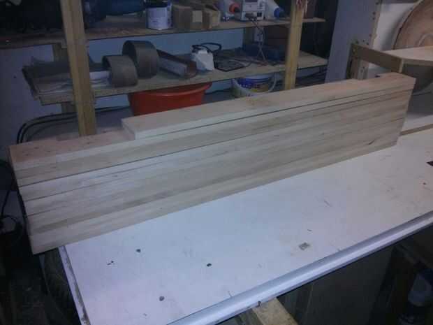 Tuvimos una gran cantidad de diferentes tipos de palletwood para elegir. Así debe tomar un montón de tablas de haya áspera. Planificado y había les había articulado hasta que conseguimos superficies y lados rectos e incluso. Hizo todo un lío, pero nos quedamos con algunas placas agradables ahora.