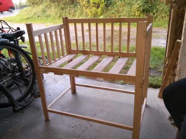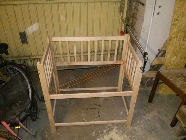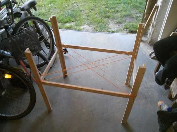 Después las piezas solo armado, nosotros podríamos conectarlos todo pieza por pieza. Para ocultar la cabeza de los tornillos, nos los avellanados. Tomamos una cuerda larga y delgada y había tirado alrededor de la pieza de trabajo. Luego nos messured de esquina a esquina, para asegurarse de que el courpus es cuadrado. Después de todo, secado, podríamos montar los listones que llevan el matrass